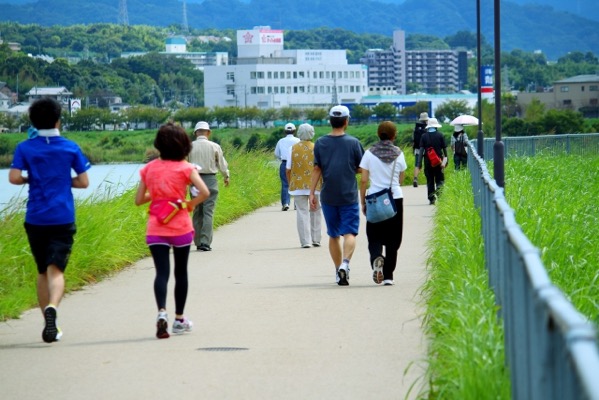 専用のジョギングコースがあるところなら、大抵は2列くらいの幅は許されます。