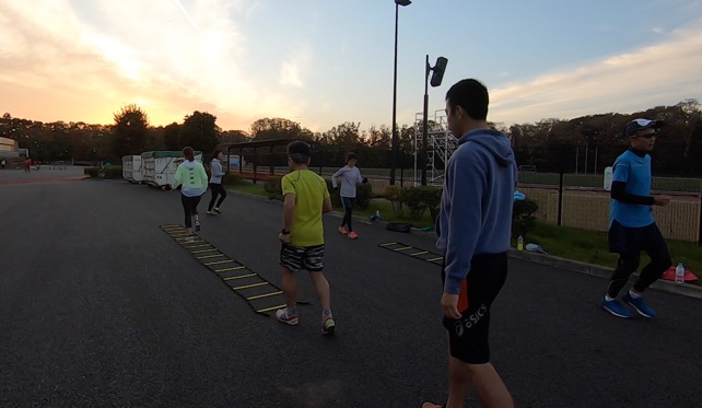 時間軸は前後しますが、流れはいつものように、体操→ジョギングからのスタートでした。
