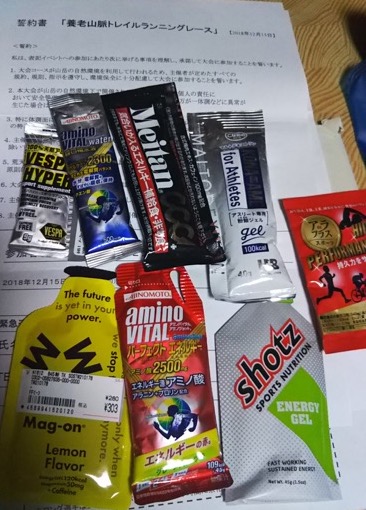 エネルギー等:アミノバイタルエネルギージェル・Mag-ON・Shots・BESPA