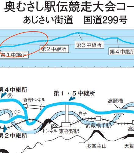 奥武蔵駅伝は市民トップランナーや高校・大学チームなどが多く参加するレベルの高いレースで、38kmのコースを”4分30秒/kmペース”で走り切らないと制限時間に間に合わないという厳しい大会です。