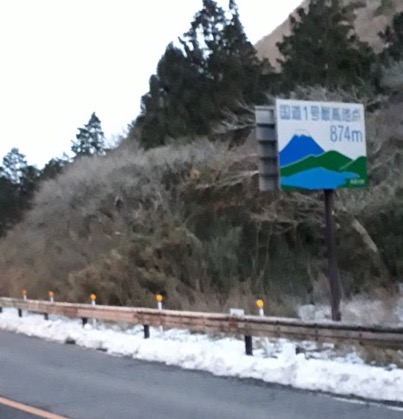 その後はしばらくロードを走る。国道1号線最高地点を通過。