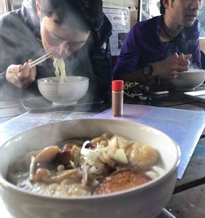 金時山頂では、きのこがたくさん入ったうどんが名物のようです。