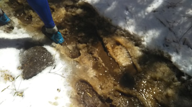 雪が溶けて、足元はグチャグチャ。