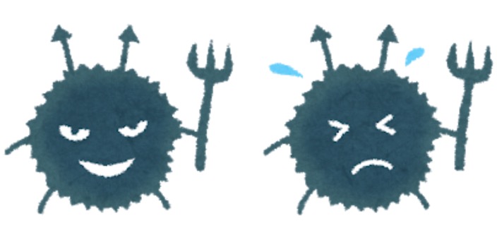 1については、ウイルスの活性・不活性などに詳しくなくても、空気中を漂う中である程度の時間や距離でその効力を失っていくであろうことは、何となく想像できます。