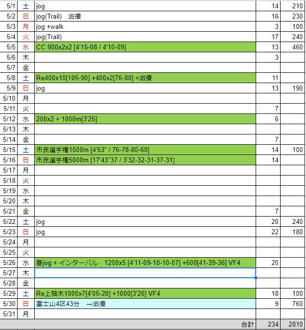 5月 相模原市民選手権(1500m4'53"/5000m17'43"37)