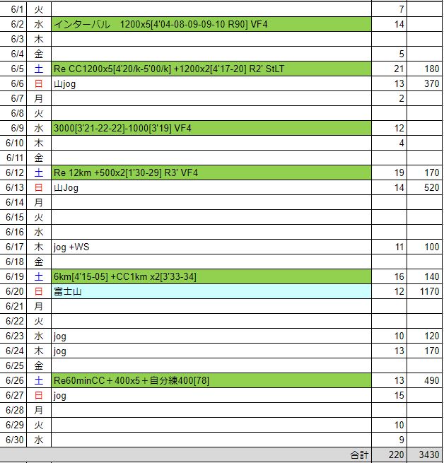 6月。少しずつトレーニングを続けるも微妙な違和感が取れず、富士山練習でも撃沈ばかりで意気消沈気味。