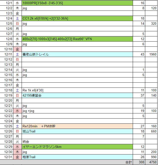 12月。練習量が全然足りてなかったことを思い知らされる。