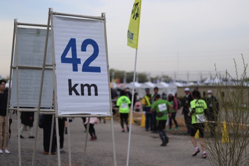 いつものように、5kmまで時計を見ず自分の感覚に任せるのですが、今回は「42kmをギリギリ走り切れそうなペース」という感触。