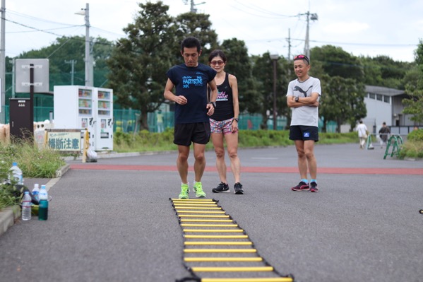 いずれは、接地時間を短くしたり、体の軸を意識したり、目線を上にあげたり・・ランニング時の動作に近づけていくことを目指します。